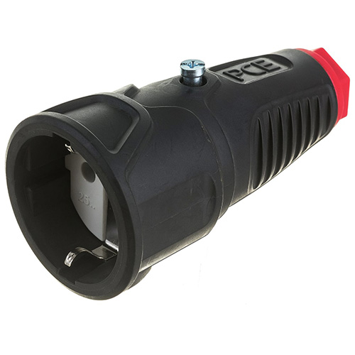 Розетка кабельная PCE 2510-sr Taurus2 (16 А, 250 В, резина, IP20) с заземлением, черный / красный