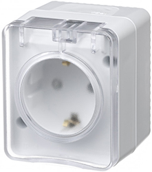 Розетка одноместная Schneider Electric ATN540145 AtlasDesign Profi54 (16 А, IP54) открытой установки, с заземлением, шторками и защитной крышкой, белый