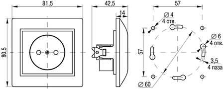 | Тип изделия | розетка без заземляющего контакта, с защитными шторками |