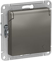 Розетка одноместная Schneider Electric ATN000946 AtlasDesign (16 А, IP20) скрытой установки, с заземлением, с защитными шторками, с крышкой, сталь