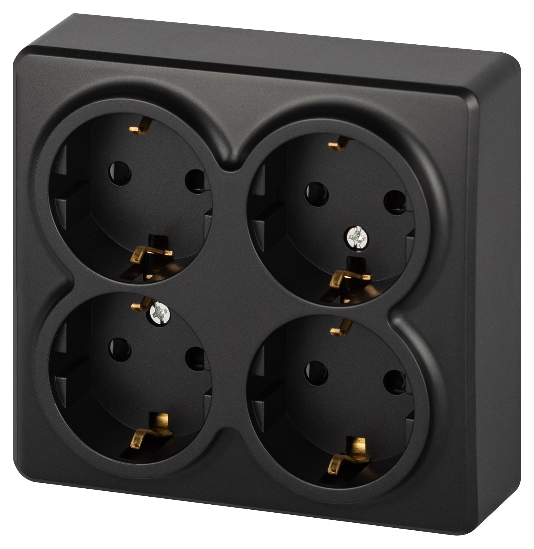 Розетка четырехместная с заземлением, со шторками серии Эра Эксперт открытой установки цвет антрацит 11-2211-05. Номинальные характеристики 16А 250В. Устройство выполнено из качественного поликарбоната, оснащёно уникальными винтовыми клеммами ЭКСПЕРТ для максимально качественного зажима кабеля в механизме.