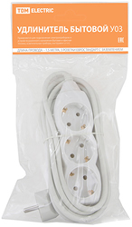 Удлинитель трехместный 1,5 м TDM SQ1303-0000 (ПВС 3 х 1,0 кв.мм) с заземлением, белый