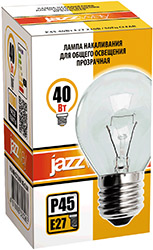 Лампа накаливания Jazzway P45 240V 40W E27 Clear (шар, E27, 40 Вт, 380 лм), прозрачный