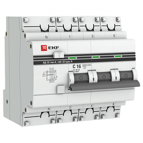 Дифференциальный автоматический выключатель АД-32 EKF PROxima представляет собой аппарат, сочетающий функции автоматического выключателя с устройством защитного отключения.