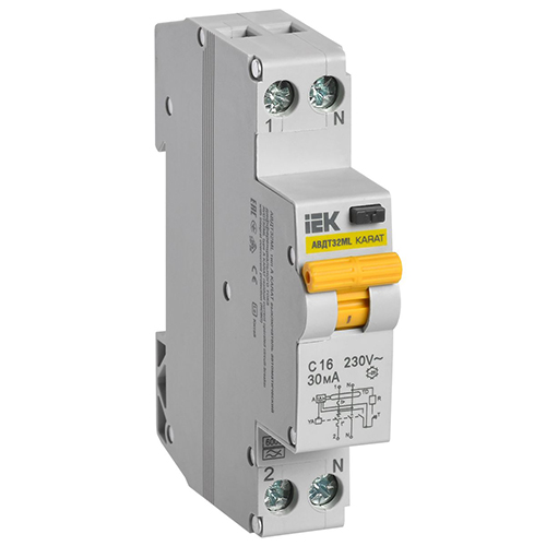 Выключатель автоматический дифференциального тока IEK АВДТ32МL тип A С16 30мА Karat (1Р+N, 1 модуль, 16 А, характеристика С, 6 кА)
