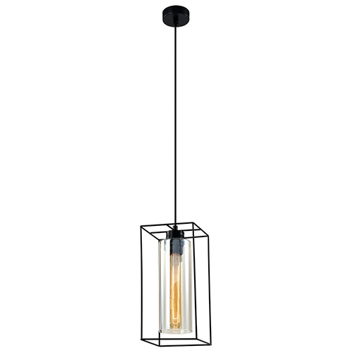 Плафон представляет собой сочетание решетчатой арматуры и стеклянного цилиндра чайного оттенка.