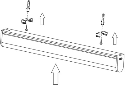 - Светильник монтируется на стене или потолке при помощи монтажных скоб и винтов самонарезающих, входящих в набор креплений.