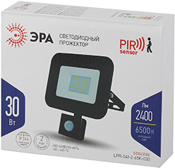 Прожектор светодиодный LPR-041-2-65K-030 "Эра" (30 Вт, 2400 лм, 6500 К, IP65), черный, с датчиком движения