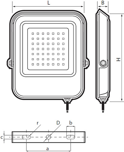 | L | H | B | D | a | b | c | r | |