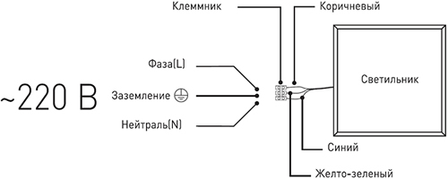 - Для подключения светильника необходимо подвести к месту его монтажа 3-жильный провод.